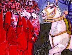 Deteneos, caballeros, o quienquiera que seáis, y dadme cuenta de quién sois, de dónde venís, adónde vais, qué es lo que en aquellas andas lleváis; que, según las muestras, o vosotros habéis fecho, o vos han fecho, algún desaguisado, y conviene y es menester que yo lo sepa, o bien para castigaros del mal que fecistes, o bien para vengaros del tuerto que vos ficieron.