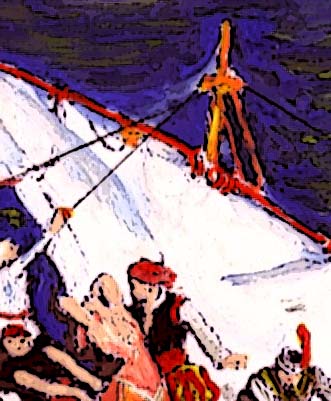 Según una versión ya estaba Cervantes encadenado al banco de una galera cuando le dieron la noticia de su rescate y liberación por los frailes de La Santísima Trinidad.