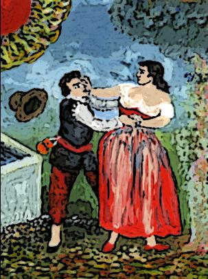 topé en el camino a esta buena dueña, y el diablo, que todo lo añasca y todo lo cuece, hizo que yogásemos juntos; paguéle lo soficiente, y ella, mal contenta, asió de mí, y no me ha dejado hasta traerme a este puesto. Dice que la forcé, y miente, para el juramento que hago o pienso hacer; y ésta es toda la verdad.
