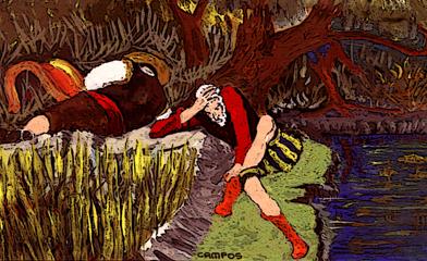 Y luego, tomando en el suelo cuanto quiso,se acurrucó y durmió a sueño suelto, sin que fianzas ni deudas ni dolor alguno se lo estorbase. Don Quijote, arrimado a un tronco de una haya, o de un alcornoque (que Cide Hamete Benengeli no distingue el árbol que era), al son de sus mismos suspiros cantó de esta suerte: