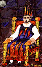 Finalmente, todas las dueñas le sellaron, y otra mucha gente de casa le pellizcaron; pero lo que él no pudo sufrir fue el punzamiento de los alfileres; y así, se levantó de la silla, al parecer mohíno, y, asiendo de una hacha encendida que junto a él estaba, dio tras las dueñas, y tras todos su verdugos, diciendo: