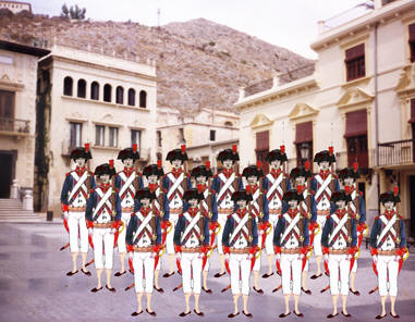 Foto del autor en la que no se ve el Palacio de Pinohermoso hasta que consiga una de su fachada antigua a color que haré en el proximo viaje a Orihuela. El poner aquí los soldados es para dar una idea rapida de donde fueron reclutados.