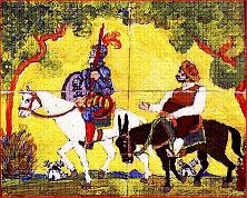 Acertó Don Quijote a tomar la misma derrota y camino que el había tomado en su primer viaje, que fue por el Campo de Montiel, por el cual caminaba con menos pesadumbre que la vez pasada, porque por ser la hora de la mañana y herirles a soslayo los rayos del sol, no les fatigaban.