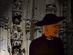 Don Magín, que pasaba por la plazuela de la Catedral, frente al pórtico de santos ensartados y de pilares con argollas que en otro tiempo fijaban el recinto de derecho de asilo. La Catedral siempre tenía la adoración cansada de un ocaso rojo.