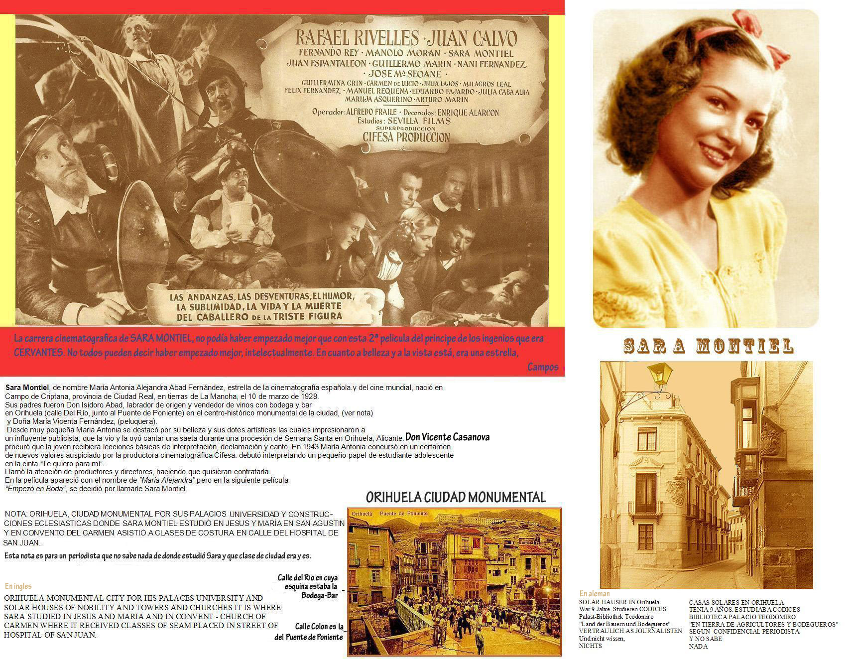 La "confidencial" NOTA es para un-una periodista? que no conoce ORIHUELA, pero esto que pongo con tanto detalle es para sacarlo-la de su ignorancia. En cuanto a su crítica sobre SARA no se merece que escriba nada porque quien sepa LEER daráse cuenta que no podía haber empezado mejor su carrera cinematográfica al lado de los actores del prospecto.
