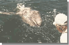 En realidad, el color de esta ballena no es gris, sino negro. Lo que ocurre es que su piel en algunas partes está cubierta de parásitos blancuzcos, lo que hace que desde lejos aparezca como grisáceo el color de estos cetáceos. Cuando tales parásitos se desprenden de la piel, dejan una marca o cicatriz de color blanquecino. Existen referencias en el sentido de que algunos balleneros de la costa de Nueva Inglaterra, en los E.U,A. Denominaban a la ballena gris "Pez del diablo", al creer que estaba formada por parte serpiente marina y parte cocodrilo. La ballena gris pertenece a la suborden de los misticetos , o sean cetáceos que carecen de dientes. En su lugar, cuentan con una fila de placas largas y flexibles que penden de la mandíbula superior, las cuales suman verios cientos, y se conocen con el nombre de peines, barbas ó ballenas, que miden menos de 50 cm. de largo y son de color marfil. Estas placas funcionan como cedazos y en ellas la ballena retiene los pequeños crustáceos de que se alimenta.