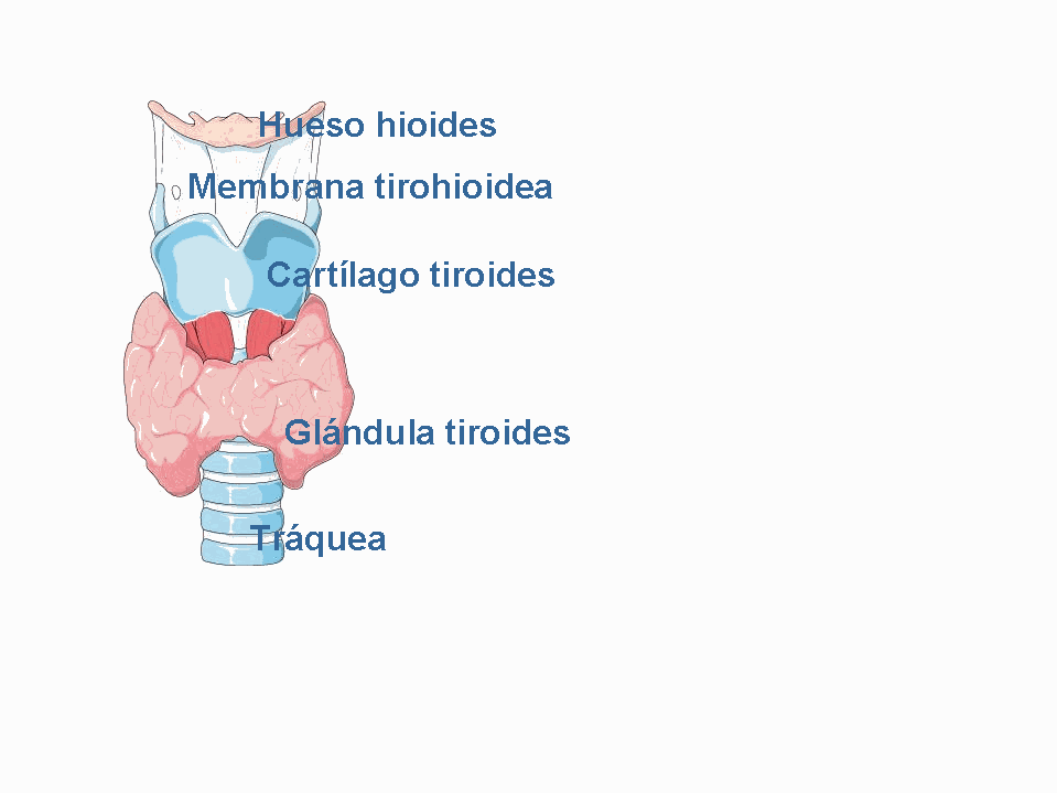 Descripción de la glándula tiroides. Anatomía La glándula tiroides se encuentra en la parte anterior del cuello delante de la laringe y tráquea cervical. Su tamaño normal está en torno a los 7cm de ancho, 3cm de alto y 1.8cm de grosor y pesa en torno a 30gr. Tiene dos lóbulos laterales unidos por un istmo (tiene forma de H; ver el dibujo). Por delante la glándula tiroides está cubierta por los músculos esternotiroideo, esternocleidohioideo, omohioideo y esternocleidomastoideo): Por detrás está relacionado con la laringe, la tráquea y el esófago cervical. Está vascularizada por las arterias tiroideas superiores (ramas de las arterias carótidas externa) y las arterias tiroideas inferiores (ramas de las arterias subclavias); puede tener vascularización inconstante por una arteria tiroidea media (rama desde el cayado aórtico ó desde el tronco braquiocefálico)