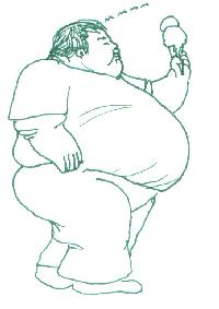 Fat people are funny! Ha ha ha! And look, he's got an ice cream cone! Hee hee! |