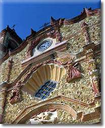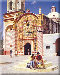 Al bajar de la abrupta montaña, vamos tras las huellas dejadas por los pies cansados de Fray Junípero Serra. El Franciscano nacido en Mallorca dejó en Jalpan una maravillosa muestra del barroco mexicano: La Iglesía del Apóstol Santiago de Jalpan. Construida entre 1751 y 1758 por los indios recién evangelizado, la misión de Jalpan es una muestra sublime de la unión de dos culturas.