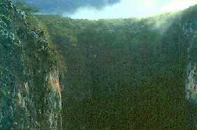 El abismo del sótano es realmente imponente, pues una piedra tarda aproximadamente 17 segundos en caer, emitiendo un sonido similar al trueno; su gigantesca entrada permite la existencia de un factor excepcional: la luz solar alcanza a penetrar hasta el fondo de la cavidad, propiciando con ello la formación de un singular y pequeño bosque en su interior, de grandes árboles y gran cantidad de vegetación.