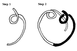 With the end, form another loop under the first as in Fig. 2.