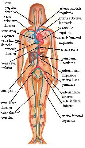 desde el corazón hasta los demás órganos), venas (vasos que recogen la sangre de los órganos y la conducen