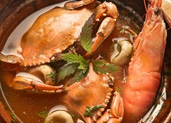 pipián de flor de izote, torta de pescado con huevo, jaibas en chileajo, enchiladas de semilla de mamey y postre de