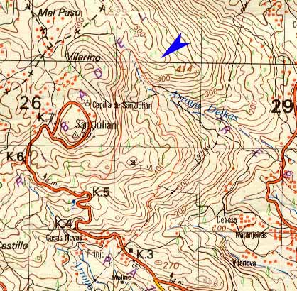 | A unos 1000 m. en dirección NE. de la cumbre del Monte Aloia (Tui), en el punto 29TNG275601 (coordenadas del Servicio Geográfico del Ejército de la Hoja nª 3-12 ; 4-12 correspondiente a Tui; escala 1:50.000), perteneciente a la parroquia de Ribadelouro (Tui), hemos localizado una extraña estructura cuya promoción y uso creemos que debió estar relacionada con los actividades pastoriles practicadas en la zona, como tendremos oportunidad de ver a continuación. | ||||||||||||||||||