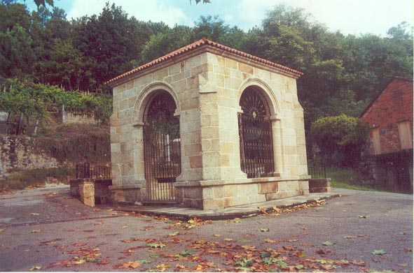 | En el acceso al torreiro (recinto de fiestas) de la parroquia de San Bieito, perteneciente al municipio ourensano de Cortegada, y el cual se encuentra adyacente a la iglesia parroquial, encontramos una original construcci�n, que a�n poseyendo paralelos morfol�gicos de diversas cronolog�as en otros muchos lugares de Galicia, por su envergadura, es sin dudas, un monumento �nico en el campo del arte religioso popular. Lo curioso es que pr�cticamente es desconocido bibliogr�ficamente. | |||||||||||||