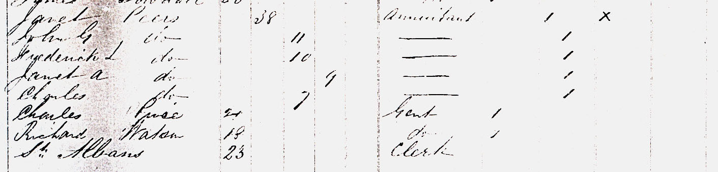 4 Janet Alice PEERS b 1843 Liverpool England., unm. d 1917 Caulfeild,. Vic. "JANET ALICE PEERS was born 1843 Edge Hill, baptised 15.7.1843 St Mary's, Edge Hill and died 1917 at Caulfield aged 74. Vic Reg BDM's No 11723. She never married. " from family CK thank you . There was a PEERS Family Newsletter Feb 1996 Issue no 1 from England via Garbutt Queensland 1996 from Peter Fletcher who sadly is now deceased.