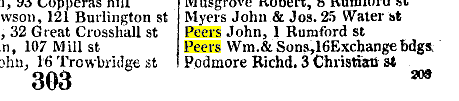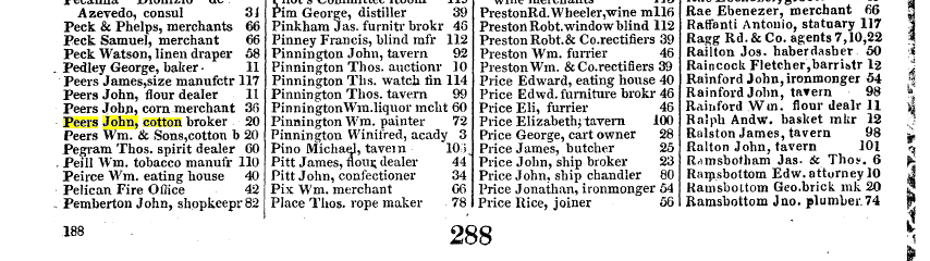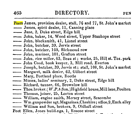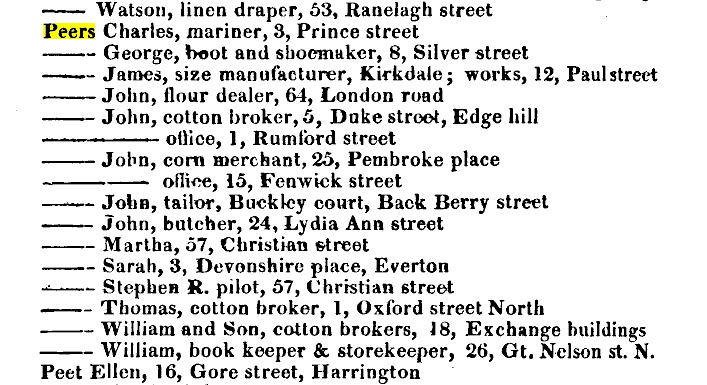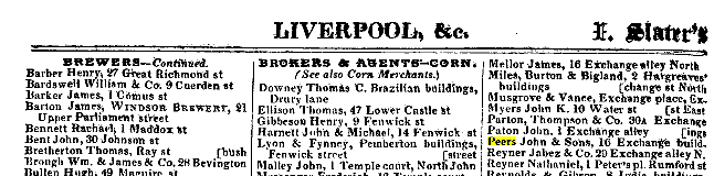 1840 William Hunter Peers , cotton broker of Edge Hill, son of John PEERS, cotton broker,[bc 1817] |