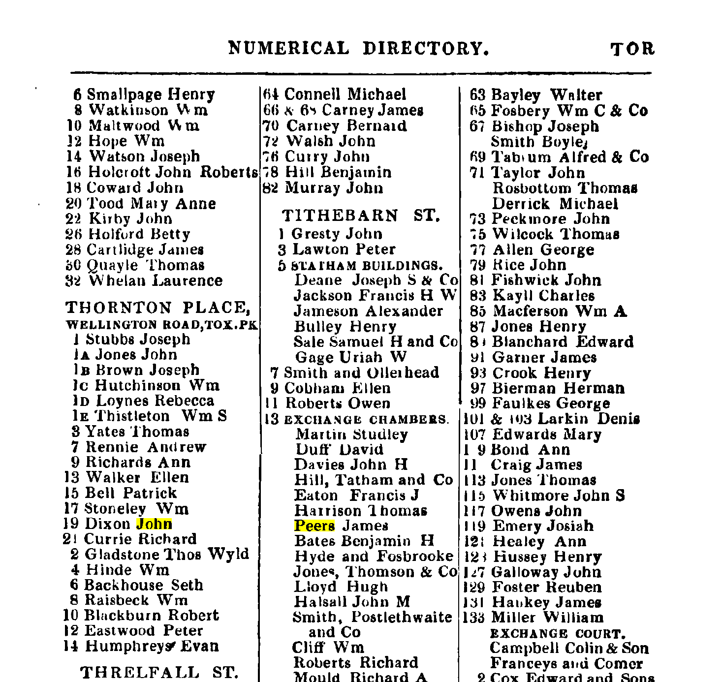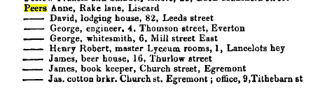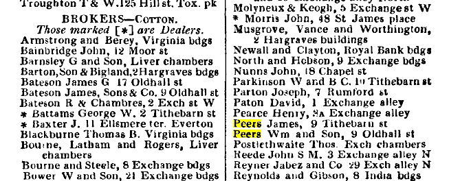 James Peers cotton broker Church St, Egremont: office 9 Tithebarn St.