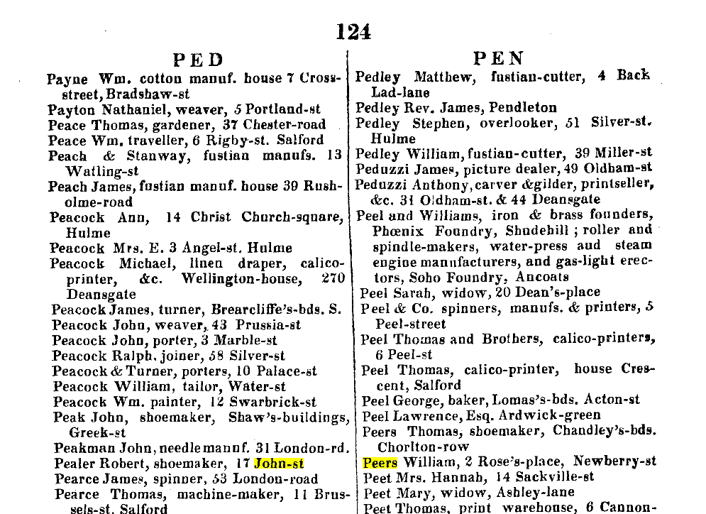 John Peers b c 1790 may have had a brother/father/ cousin William Peers a cotton broker is listed in the Lancashire Wills 1826-1830 dated April 1826 - this may be the date the will was proved or the date of death - not stated in 2ndary source.