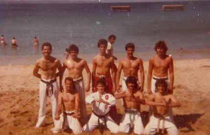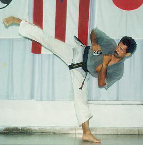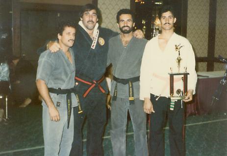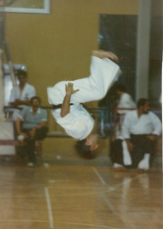 The trademark back flip, Sensei Jimmy competing in katas in 1986.
