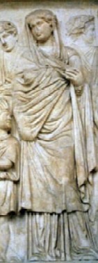 Mujer romana en el siglo I antes de nuestra Era cubriendo ya su cabeza y todo su cuerpo.