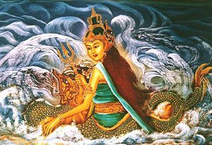 del mar y con un caduceo (serpientes entrelazadas) en la mano. Kababelan