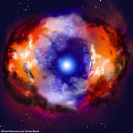 20. Unión de Agujeros Negros He mencionado en algunas entradas de este Blog la verdadera naturaleza de los núcleos galácticos. Ahora Nature publica el reciente hallazgo nada menos que de la fusión o abrazo de dos agujeros negros. Leer en este enlace de El Mundo