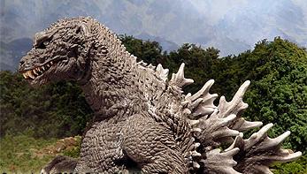 | But the one outstanding feature that delivered Godzilla so effectively as an unstoppable machine of terror, were the new pupil-less, blank-white eyes that this suit sported. Godzilla�s back was hunched over, much like an upright carnivore, and the original ears and fangs also made an appearance on this incarnation. |