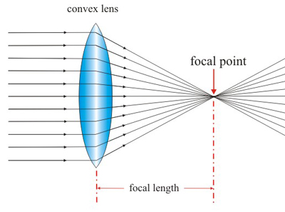 A lens is transparent block that causes light to refract (changes the direction the light travels in). A converging lens (or convex lens) is curved outwards on both sides or thicker in the middle than the edges. This means the light rays coming out of it come together at a point – they converge.