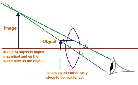 A virtual image is formed when light rays originating from a point on one side of a lens (i.e. the object) are refracted by the lens so that they diverge (move apart from each other) on the other side of the lens. When these rays are traced back in a straight line (ignoring that they were actually bent by the lens) then appear to diverge from a point on the same side of the lens as the object (this is the location of the virtual image). This happens when the object is closer to the (converging) lens than the focal length.