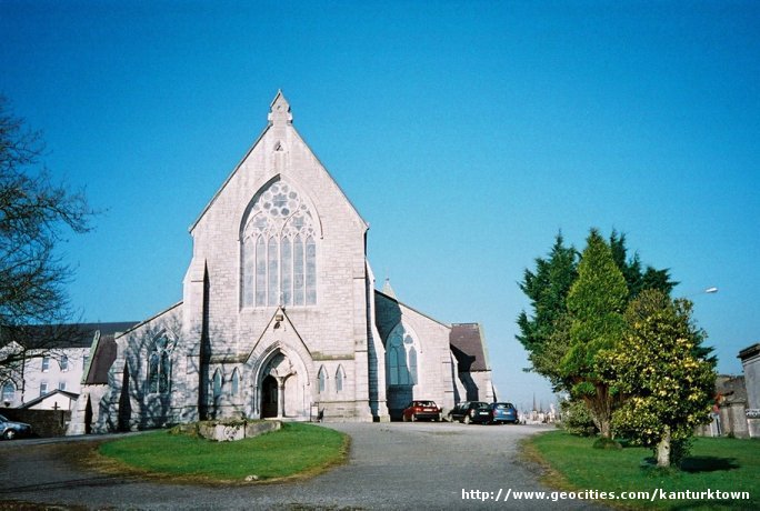 Church of the Immaculate Conception:(1860-1867). The Church has an unusually high pitched roof supported by polished limestone pillars. On first seeing Kanturk Town when entering from Mallow, through Greenane Street this fine building can be seen quite easily and is one of the most distinguished buildings in Kanturk. It is 145ft., in length with nave 40ft., and two side aisles each 20ft., wide. The church was erected by subscriptions of the parishioners and Kanturk exiles in the gold fields of Klondyke, Australia and South Africa, who donated gold nuggets which were melted in one big nugget, which was to be raffled at the Egmont Arms Hotel in 1866. The raffle was to be held on June 6th 1866 but was postponed from week to week until the following August 17th. The raffle does not appear to have been held and one wonders what happened to the gold nugget! |