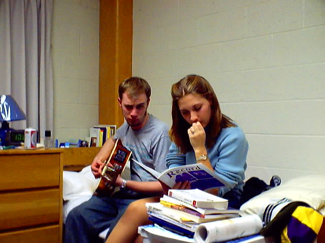 | Eliot (Play Amadeus) and Cait (deep...deep in thought) having fun just hanging out in my room. |