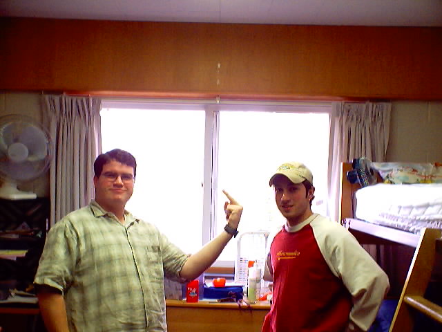 | From two doors down we have Dave (left) and Mark (right). Dave is a computer genius who gave us the gift of watching "Fast and the Furious" on a wall. Mark is a former student of J Lo... which J Lo... I dont think thats important... why? Cause Mark's the man, and thats reason enough. |