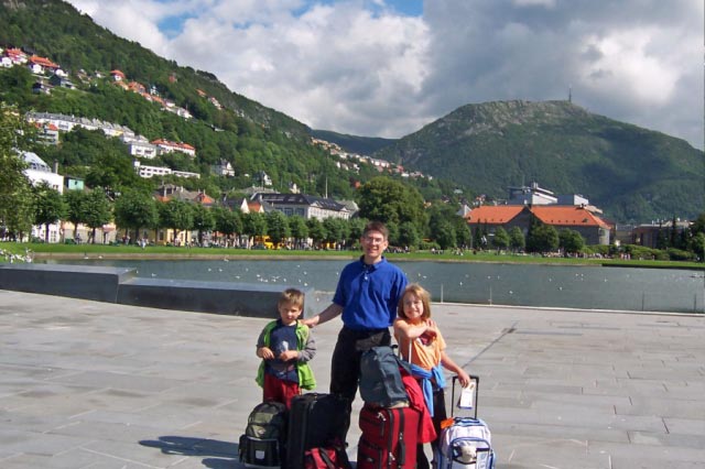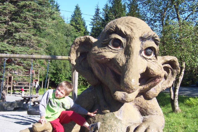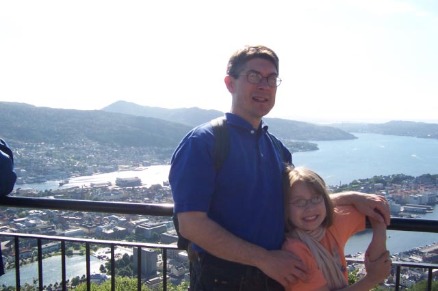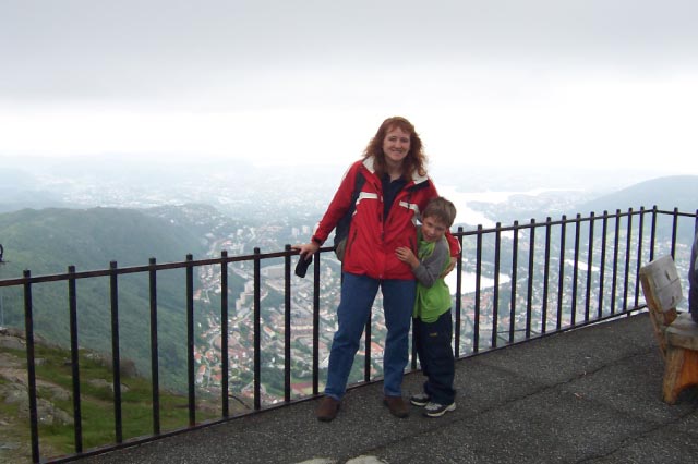| The two pictures above are from Mt. Floyen. Noah enjoyed the Floibanen (inclined rail car) ride up the mountain. He made a new friend at the playground. |