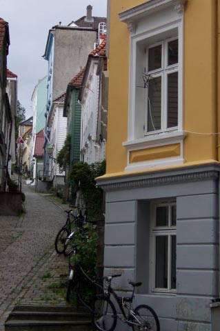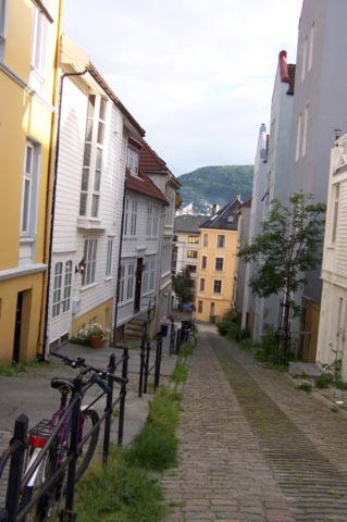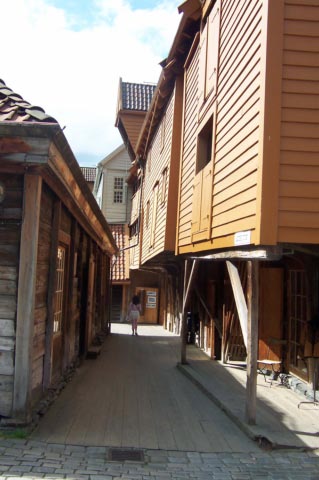 | The picture above was taken right after we arrived in beautiful Bergen. The pictures on the right show some homes in one of Bergen's neighborhoods. The picture on the left is of Hanseatic League buildings. The Hanseatic league was a powerful confederation of German merchant cities. They were in power in Bergen from the 1300s-1700's. |