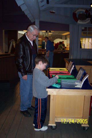 Grandpa and Noah work on a project at the Indianapolis Children's Museum |