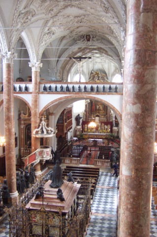 | Dom St. Jakob (left) can be viewed from a balcony accessed by a door from the Hofburg. | |||||||||||||||||||||||||||||||||