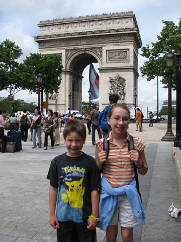 | Rachel and Noah prepare to climb to the top of L'Arch de Triomphe (Arch of Triumph) with their mom |