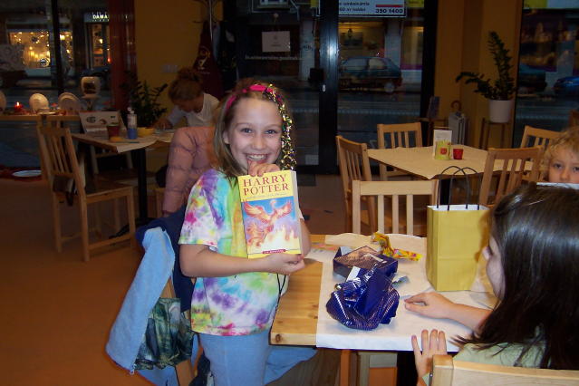 | A week later, I had my birthday party at "Color Me Mine" pottery studio. My favorite gifts were the 5th Harry Potter book and a neat zebra stapeler. I painted a Christmas mug that says "Merry X-mas" on the bottom so when you're finished drinking you'll be reminded of the season. . |