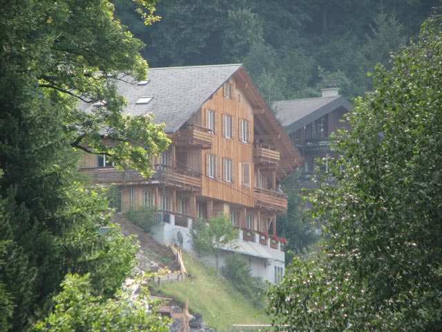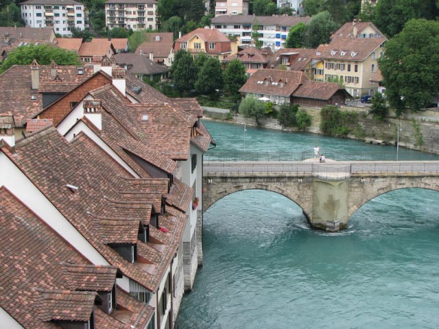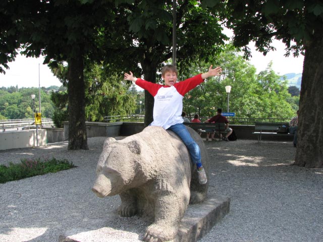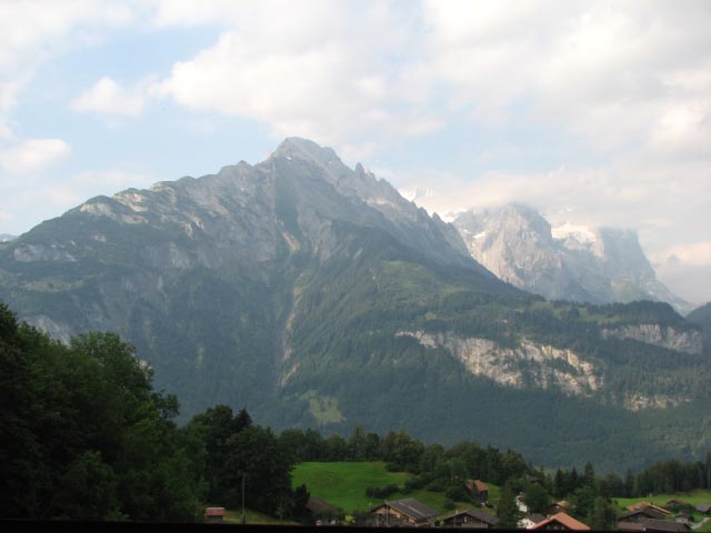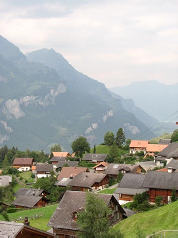 | In July 2007 we spent 6 days and 5 nights in breathtaking Switzerland. We drove having stopped at Namur, Belgium and Colmar, France along the way. First we stopped in the capital city of Bern for a few hours before continuing on to Hasliberg Rueti where we spent 4 nights. Hasliberg is a part of Berner Oberland and specifically in the Brienz-Meiringin-Hasliberg area. Hasliberg Rueti is one of four Hasliberg hamlets on the side of a mountain and was connected to the rest of the world by one narrow, windy road and a gondola station. We hiked over to Hasliberg Wasserwendi one day and rode down to a gondola station just above it on giant "monster trotti" scooters on another day. On yet another day we hiked for four hours from the mountain peak above Hasliberg to the moutain lake called Engstlensee nestled between several other mountains. We spent our last night in the larger town of Meiringen in the valley below. Meiringen is famous as the birth place of meringue. As we left Switzerland we discovered Rheinfall (Rhine Falls) in Schaffhausen near the German border. Rheinfall is the largest waterfall in Europe. |