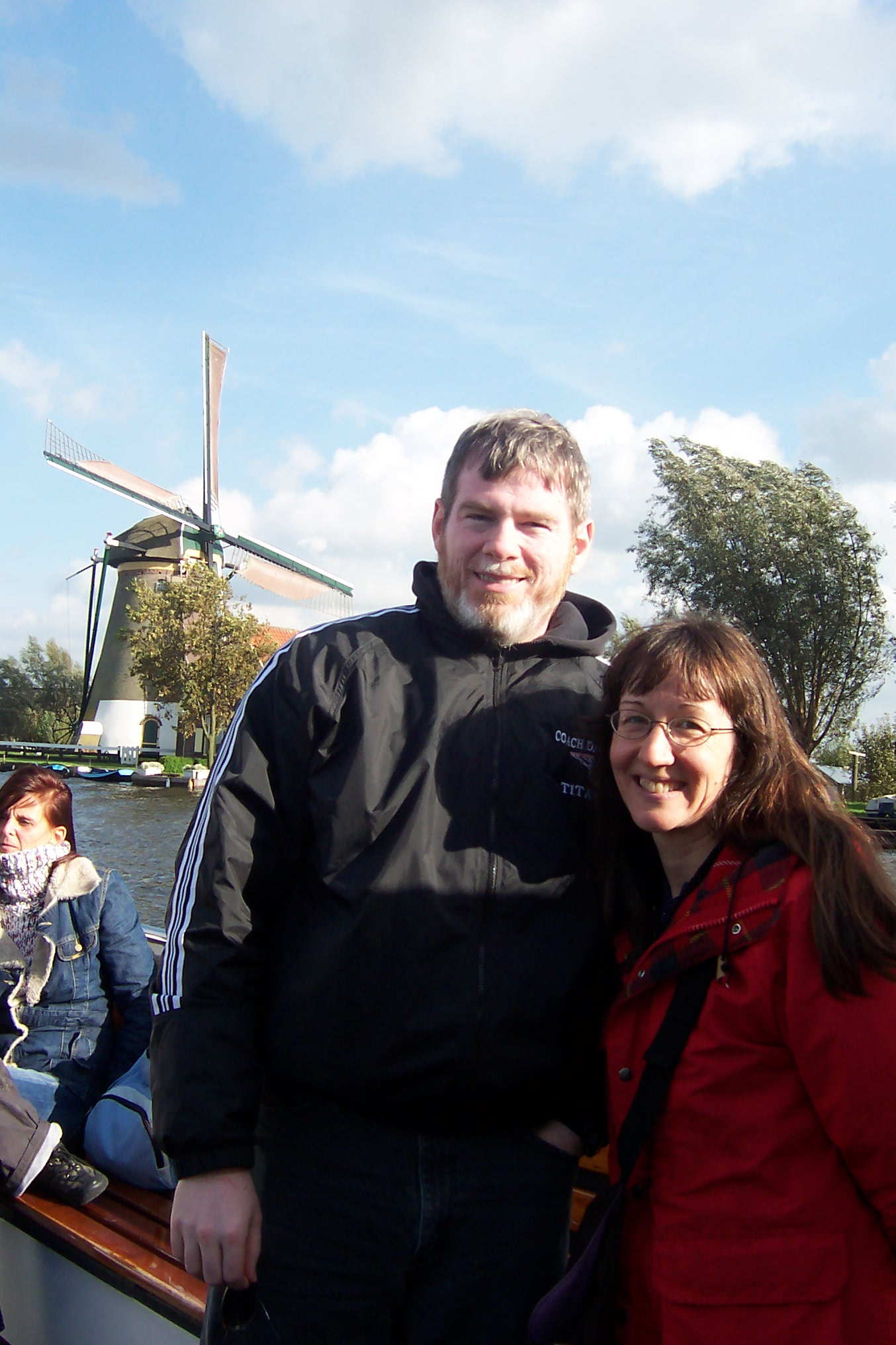 | While Teresa and Pete visited we took a fun trip on a boat through lakes and canals on a not too sunny Saturday in October. There were lots of windmills to see and plenty of cows too! It was interesting to see that often the fields were lower than the level of the water. We do (as does much of this part of Holland) live below sea level. |