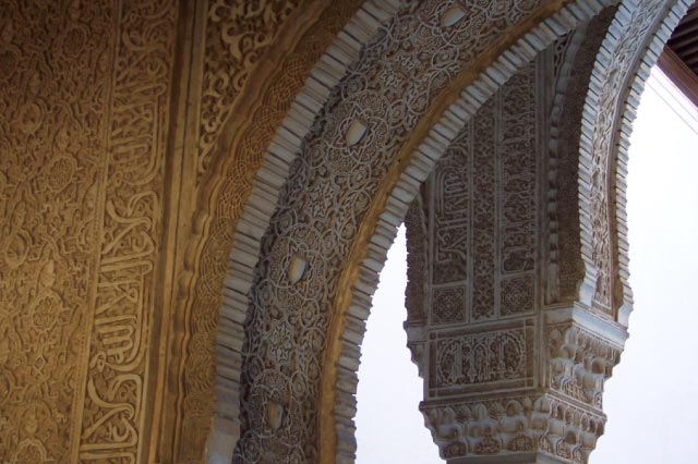 | Elaborate text and geometric carvings and tile work were everywhere in the Moorish palaces, even on the ceilings. Any single section would make a museum in the US, and there were thousands of sections. |
