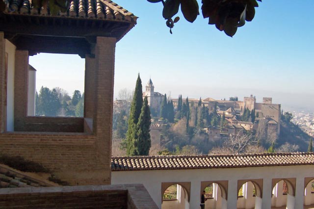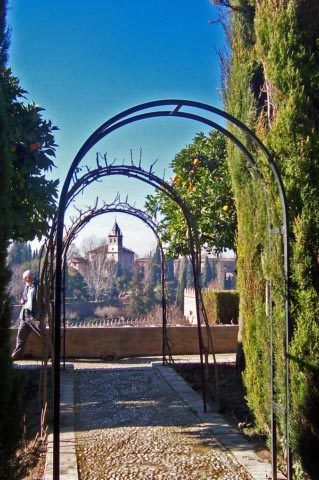 | The Generalife is across a ravine from the Alhambra. It was originally used as a retreat for the sultan. The gardens were quite impressive during our January visit and we could only imagine the beauty that they would hold with plants in full bloom. |