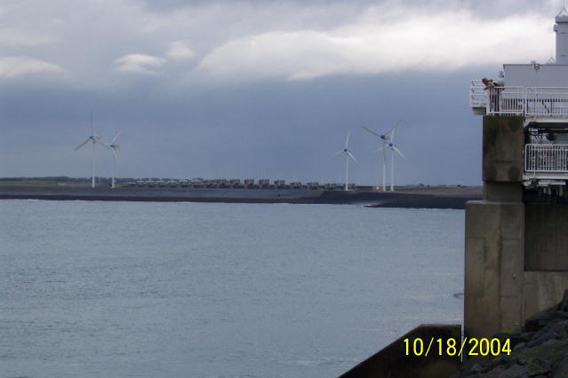 | These modern windmills power the pumps to control the water levels. There are also moveable pieces to this dam which are used only in the event of a storm surge. |