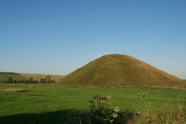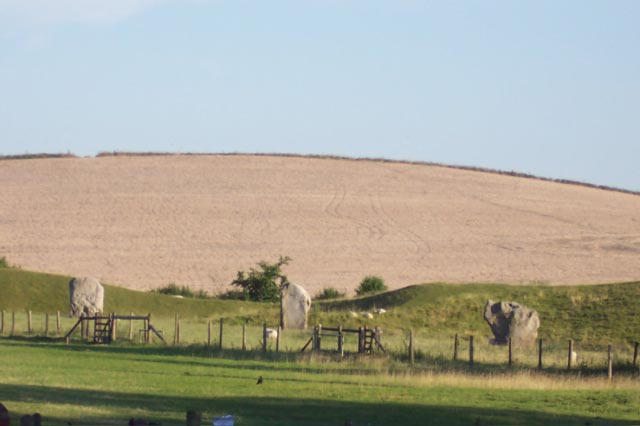 | On the way back from Bath to Reading we drove by the town of Avebury that has a ring of prehistoric stones surrounding it and the nearby prehistoric manmade Silbury Hill. Not much is known about these structures or the people who erected them. |