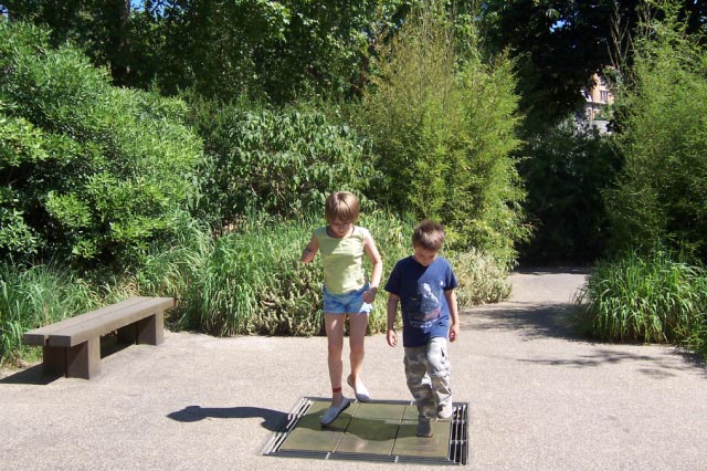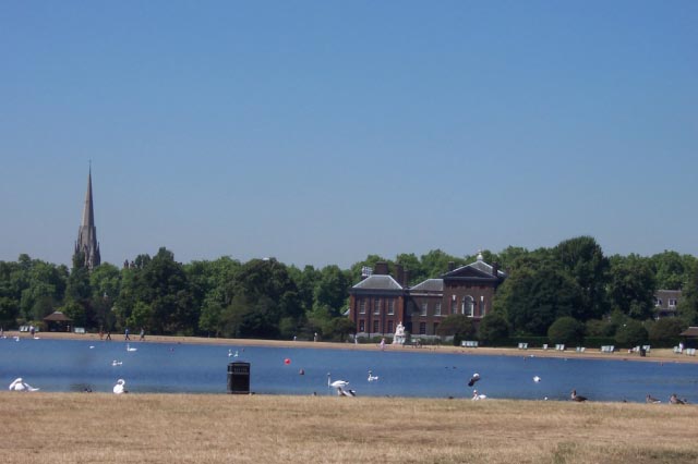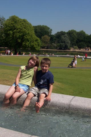 | One day Karen and the kids went to London. Below left is Kensington Palace and on the right is the Princess Diana Memorial Fountain where the kids were able to cool off a bit on a record-breaking hot day. The destination for the day was the National Science museum. |