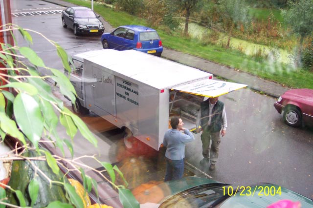 | The "cheese man" comes around every Saturday with butter, eggs, and cheese. You can sample the different varieties- we like the "jonge kaas" to eat, "belegen" to cook with and cheese with cumin seeds for mexican dishes. The goat cheese is yummy too! |