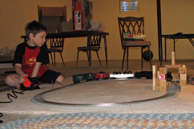 | Noah really enjoyed playing with his new train set in Grandma and Grandpa's basement. We were able to pack it up and get it home as baggage on the airplane. |