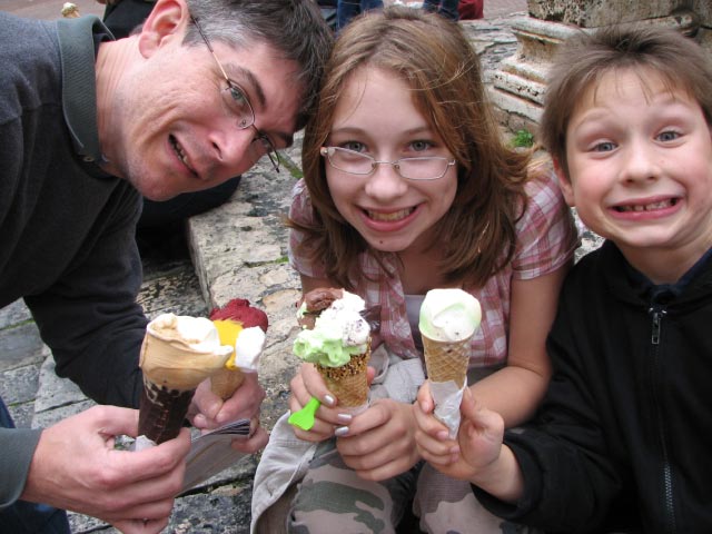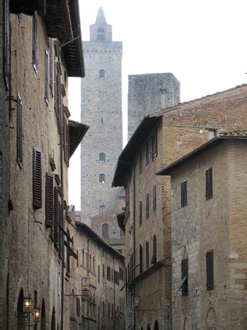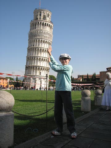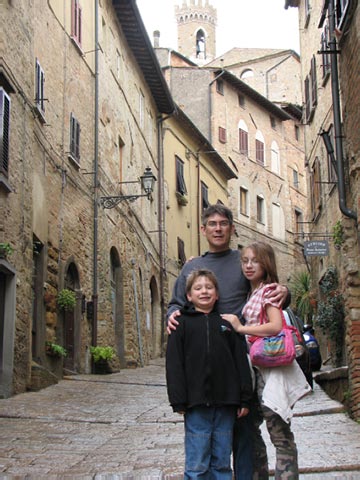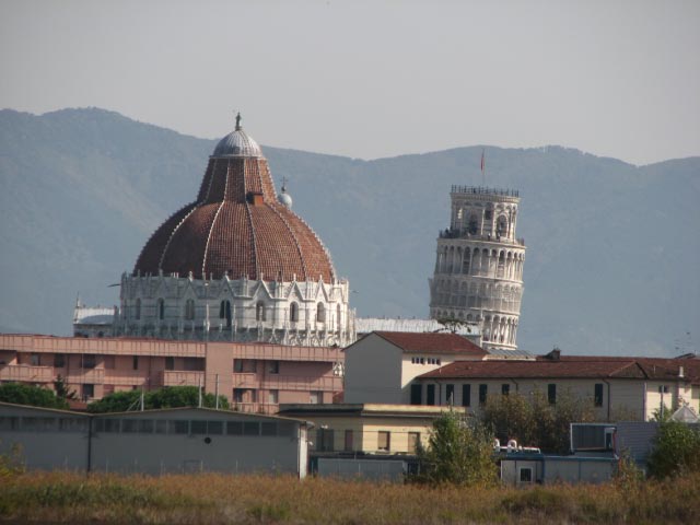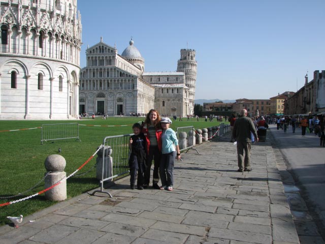 | On Friday we got up early and took Ralph's parents to the airport. We travelled to Volterra while Ralph and Laurie started the long journey back to the US. Volterra had fantastic views of the surrounding valleys, many ruins from Etruscan and Roman times as well as alabaster shops. After lunch we drove to San Gimignano, which is famous for its' towers. It rained on us there and we were soaking wet when we got the to the car. We drove back to the house and had dinner. On Saturday, we left the house for good and made one last stop, at the Leaning Tower of Pisa, before we went to the airport. The Tower buildings next to it were cool, but the area around it was one of the worst tourist-trap areas we have seen in Europe. Nonetheless, it was a great trip. We enjoyed spending time with Ralph's parents and found Italy to be beautiful with delicious food and friendly people. Ciao. |