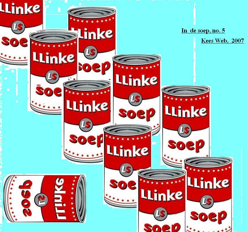 In de soep, numero 3 (zeefdruk, olieverf op MDF, 230 bij 230 cm) Kees Web - 2005 Bezitter: Andy Warhol Memorial Foundation Inc.